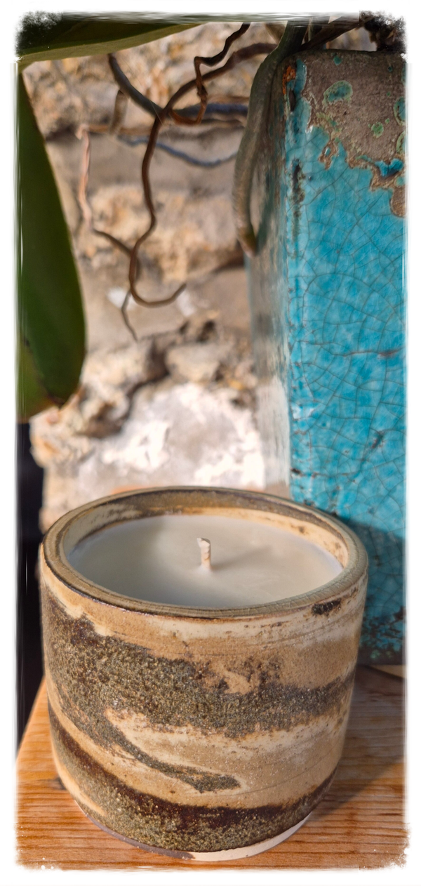 La bougie céramique artisanale Sillage est une trace persistante, une mémoire olfactive enracinée. Sa céramique aux nuances brunes et sableuses évoque les chemins parcourus, les paysages intérieurs. Allumée, elle laisse derrière elle une présence douce et tenace.