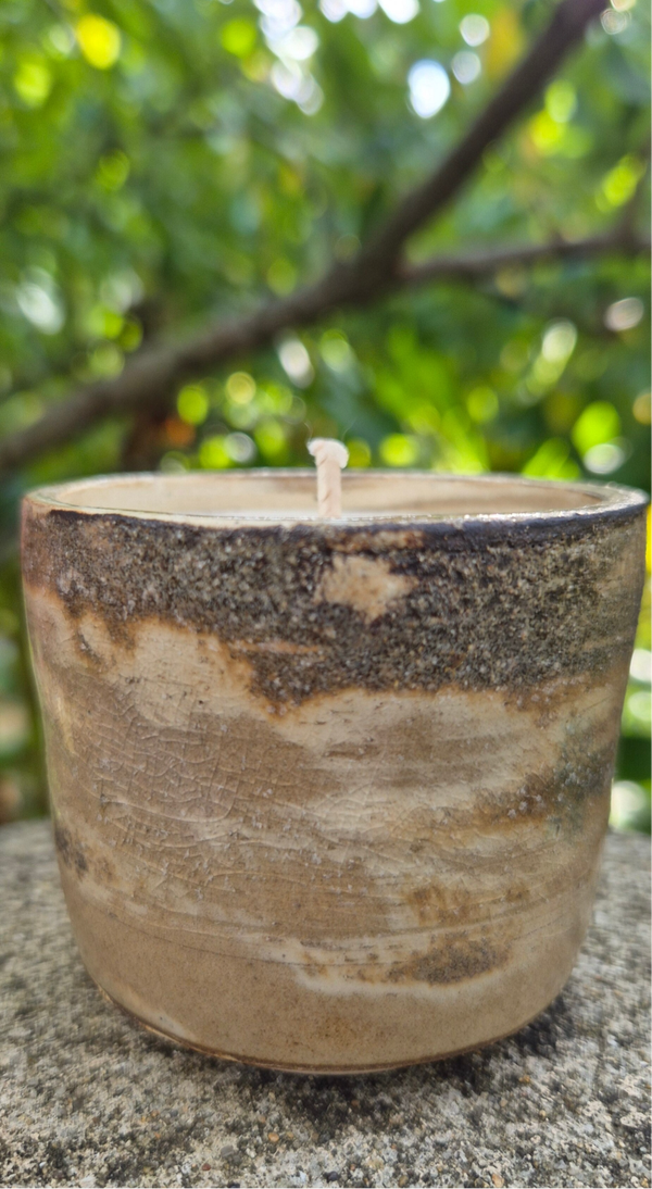 La bougie céramique artisanale Onde de sable est une vibration douce, un mouvement suspendu. Sa céramique fluide et nuancée évoque les dunes en mouvement, les souffles invisibles. Allumée, elle diffuse une lumière apaisante, comme une respiration lente.