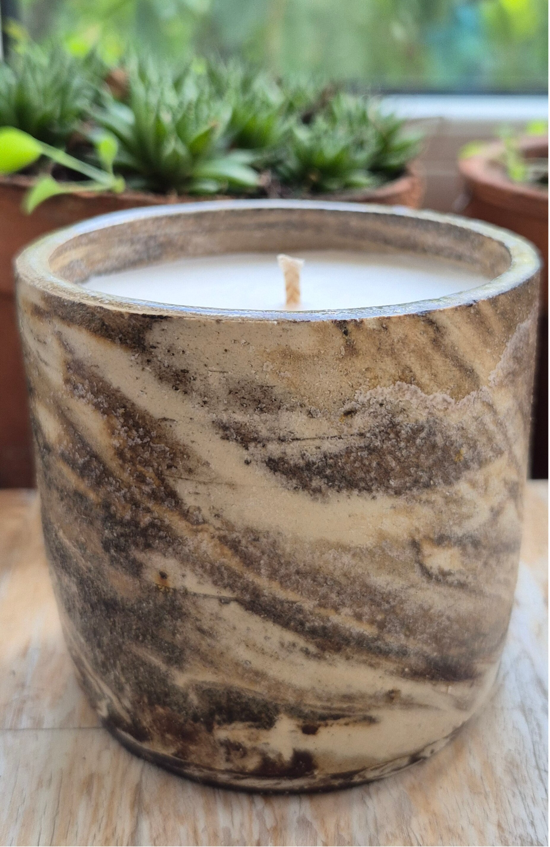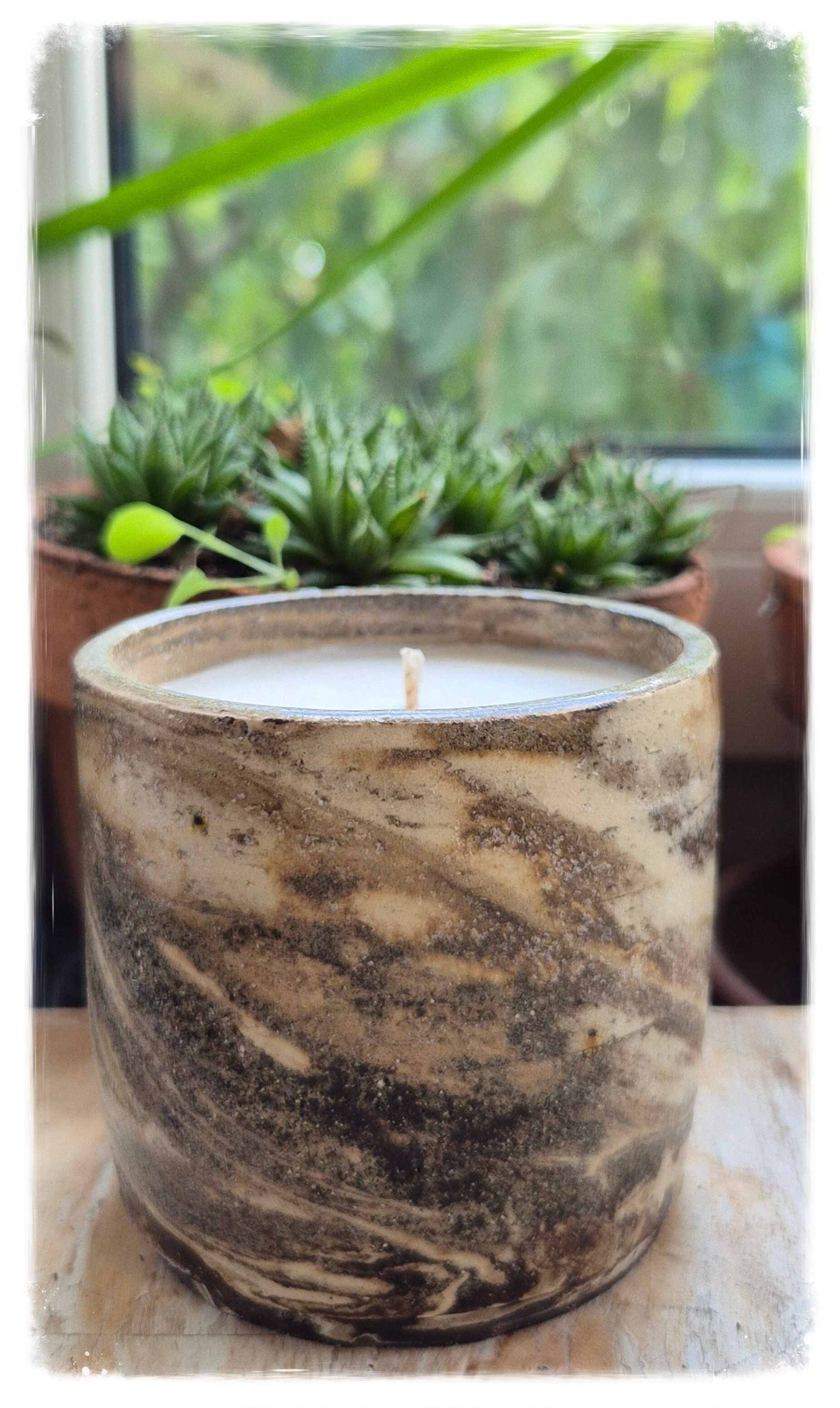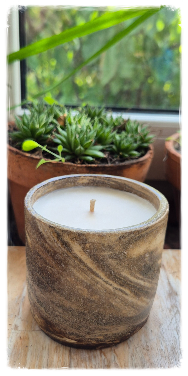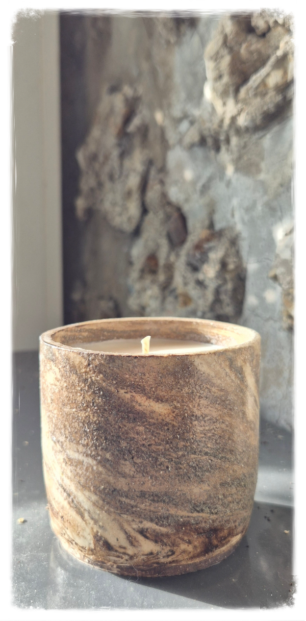 La bougie céramique artisanale Éclat de terres célèbre la lumière née du sol, la noblesse des matières mêlées. Sa surface révèle des contrastes subtils entre crème, brun et sable. Allumée, elle rayonne avec délicatesse, comme une braise douce au cœur de l’argile.
