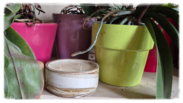 Engagement écoresponsable : cires végétales de provenance française ou européenne, contenant réutilisable réalisé par un artiste céramiste basé en Île-de-France, fabrication locale et respectueuse de l’environnement.