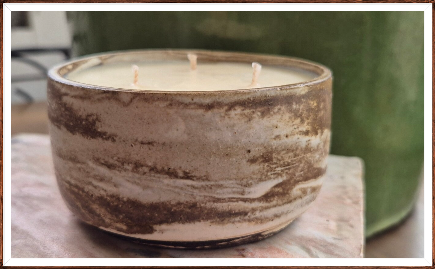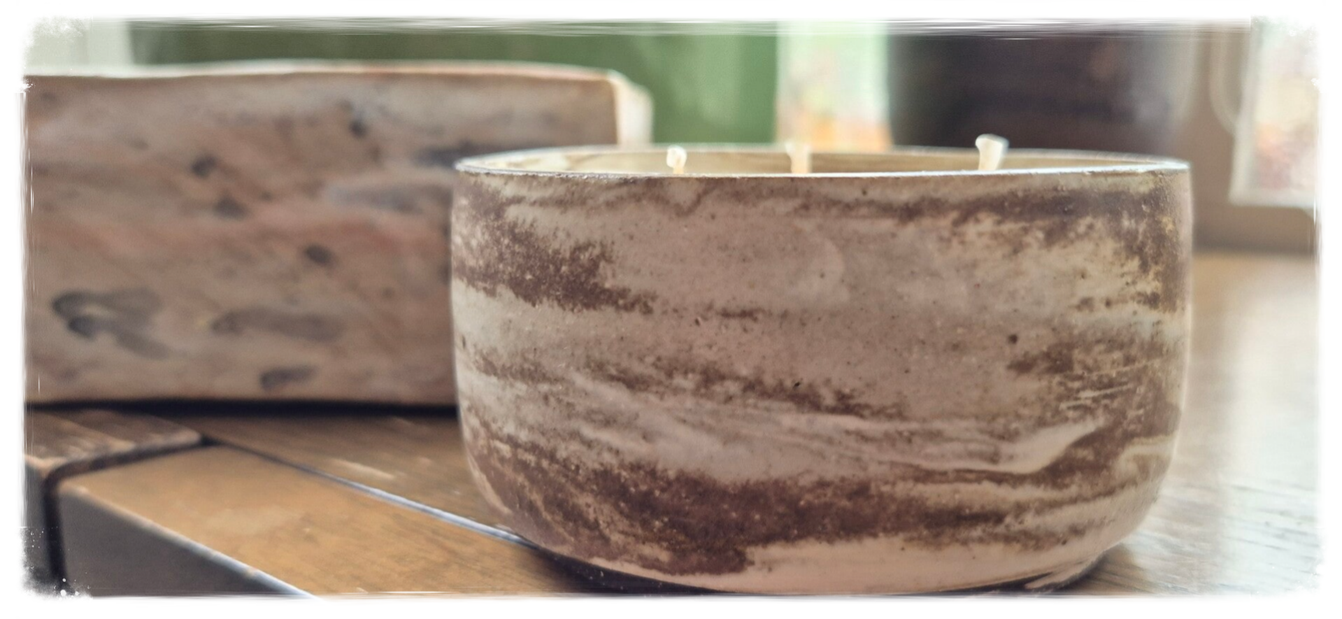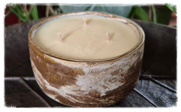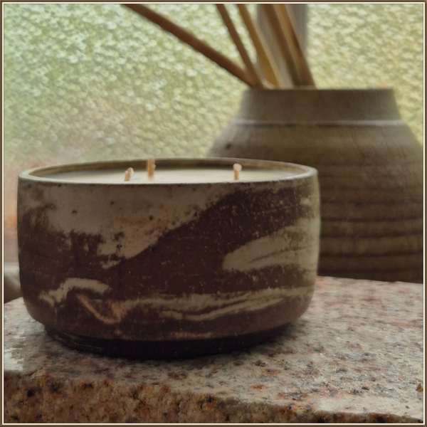Engagement écoresponsable : cires végétales de provenance française ou européenne, contenant réutilisable réalisé par un artiste céramiste basé en Île-de-France, fabrication locale et respectueuse de l’environnement.