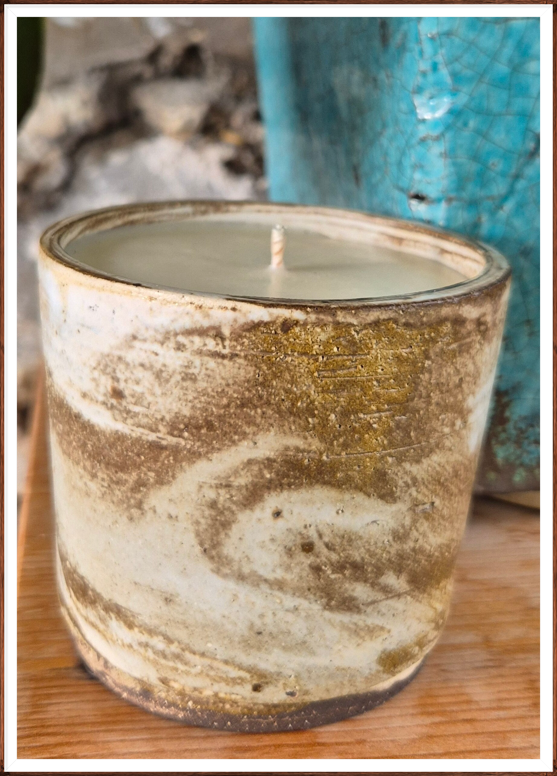 Engagement écoresponsable : cires végétales de provenance française ou européenne, contenant réutilisable réalisé par un artiste céramiste basé en Île-de-France, fabrication locale et respectueuse de l’environnement.